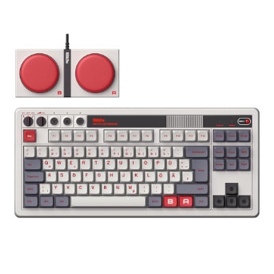 Was wir bislang nicht erwähnt haben, ist die Tatsache, dass 8BitDo auch einige Tastaturen im Retro-Design anbietet. Bislang waren diese nur mit einem US-amerikanischen Tastaturlayout zu haben – nun ist aber auch das 8BitDo Retro Mechanical Keyboard mit einer deutschen QWERTZ-Tastaturbelegung im ISO-Format auch bei Amazon zu finden. Vorab wichtig zu wissen: Der Hersteller gibt an, dass die Tastatur offiziell nur Geräte ab Windows 10 und Android 9.0 unterstützt. Ich werde allerdings noch einmal bei meinem 8BitDo-Kontakt nachhaken, ob man die Tastatur auch mit macOS verwenden kann.