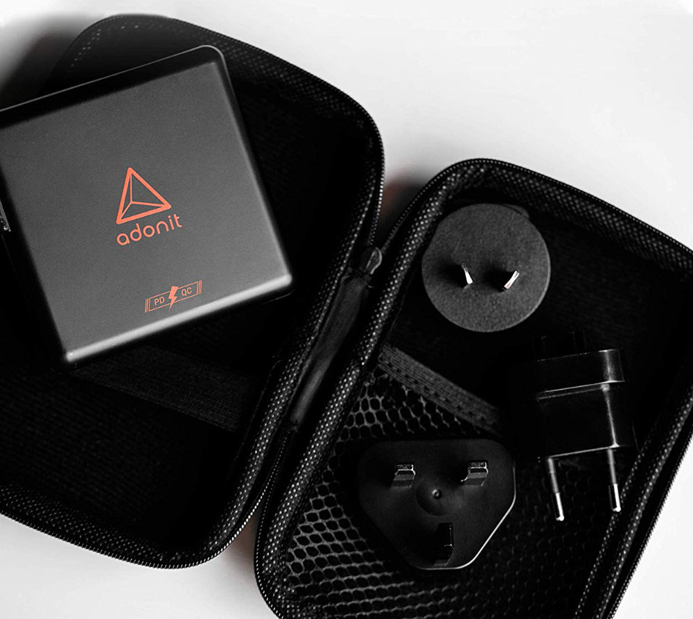 Ein echtes Multitalent und einer meiner Favoriten aus dieser Qi-Zubehörsammlung ist der Adonit Wireless TravelCube, der gleich mehrere tolle Funktionen für Reiselustige verbindet. Neben einer 6.700 mAh Powerbank inklusive induktiver kabelloser Ladefläche (max. 7,5W für iPhones) bietet das Zubehörprodukt auch eine Auswahl an Reiseadaptern für die Steckdose zur Nutzung in der EU, USA, UK, Australien und Asien. Mit diesen Adaptern und den vorhandenen 2x USB-A- sowie 1x USB-C-Ladeports ist es somit weltweit möglich, die eigenen mobilen Geräte unterwegs aufzuladen. Eine LED-Anzeige zeigt die aktuelle Akku-Prozentzahl an, außerdem gibt es ein Hardcase zum sicheren Transport auf Reisen. Der Adonit Wireless TravelCube ist für 49,82 Euro erhältlich.
