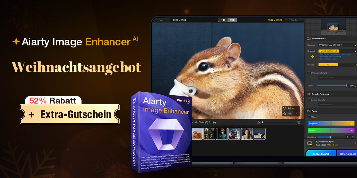 - Aiarty Image Enhancer für 64 Euro statt 145 Euro (zum Angebot)