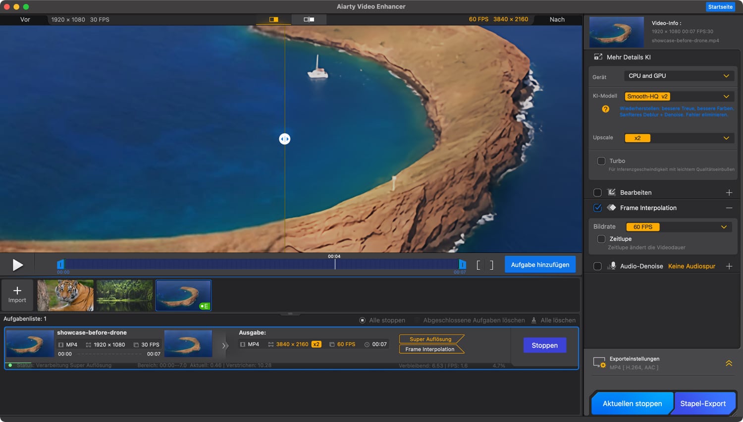 - Skalierung auf 4K: Deine alten SD- oder HD-Aufnahmen kannst du ganz einfach in 4K hochskalieren.