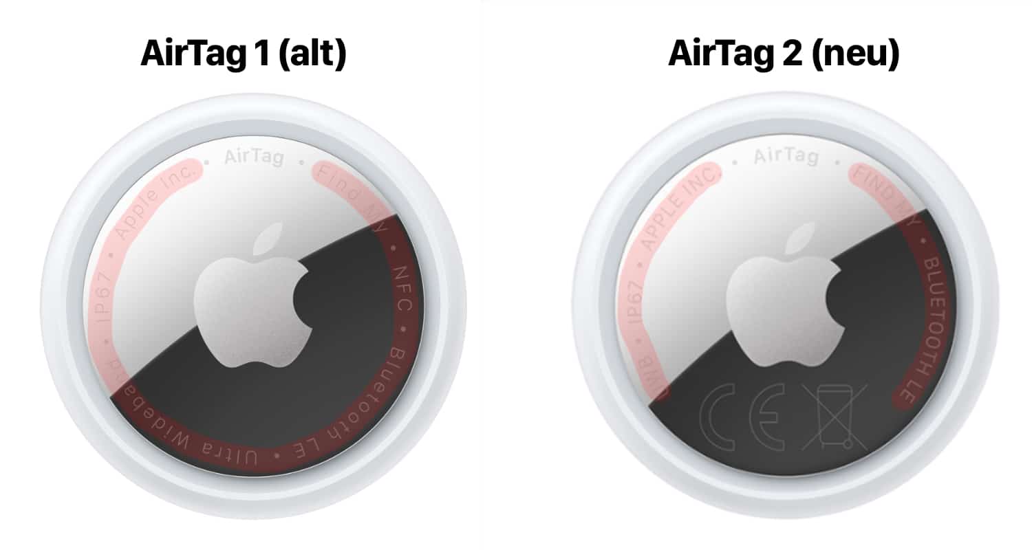 Der AirTag 2 weist im Vergleich zum AirTag 1 auf der Rückseite einen anderen Text auf.