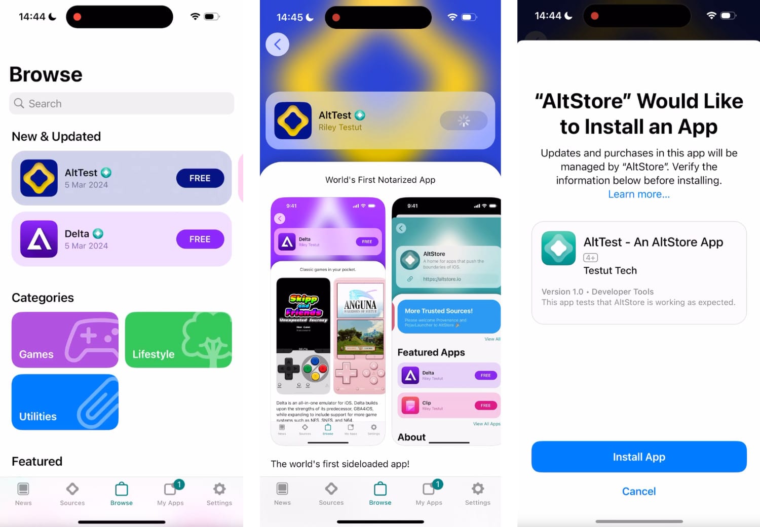 Testut plant, den AltStore zu starten, sobald er die endgültige Genehmigung von Apple erhalten hat. Wie alle alternativen App-Marktplätze wird auch dieses Angebot auf die Europäische Union beschränkt sein. Apps können auf alternativem Wege nur auf dem iPhone, und nicht auf dem iPad installiert werden, und dies nur in zugelassenen europäischen Ländern.