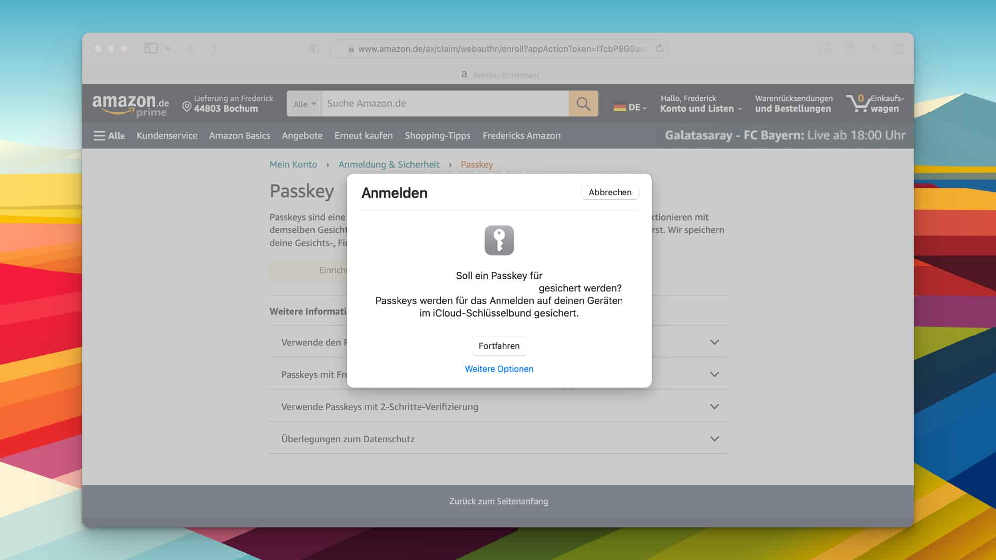 Passkey für Amazon generieren