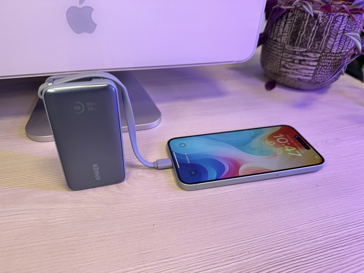 Anker gibt die Leistung mit maximal 30 Watt an, wobei das von der aktuellen iPhone-Generation gar nicht ganz ausgereizt wird. Mit einem iPhone 15 Plus konnten wir 26,1 Watt Ladeleistung erzielen, mit einem iPad Air konnten wir mit 27 Watt aufladen.