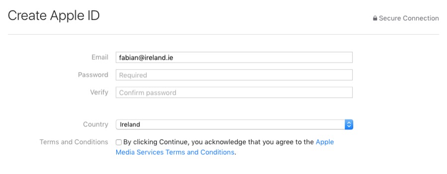 Ich hab mehrfach versucht eine irische Apple ID zu erstellen – über iTunes und über die Website und dann nochmal via VPN mit irischer IP. Ich komme immer gleich weit: Sobald ich den Aktivierungscode aus der Mail eingebe, kommt „Unexpected error occurred“.