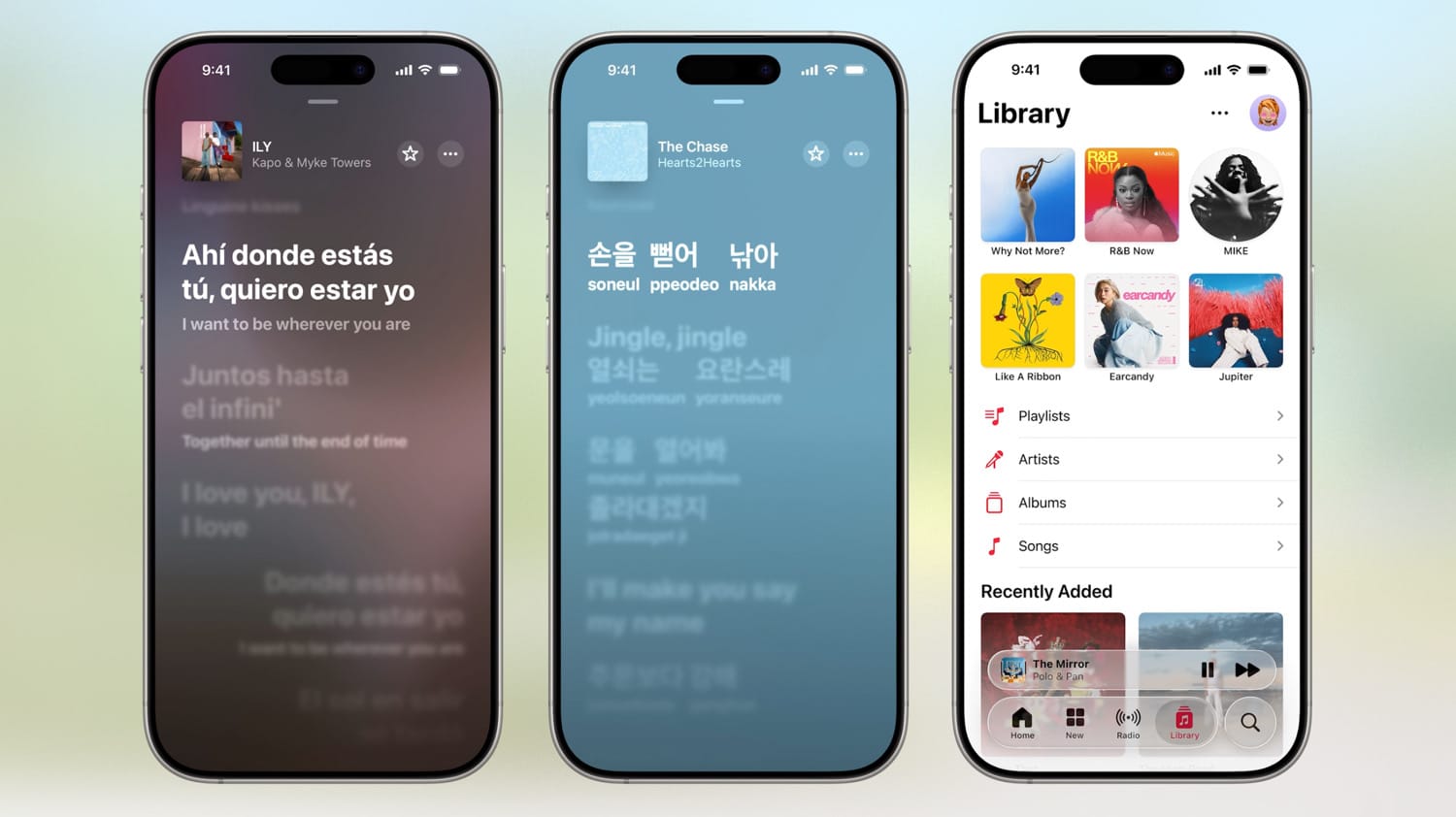 Apple Music: In der Musik-App werden Liedtexte nicht nur in andere Sprachen übersetzt, sondern auch die Aussprache angezeigt. Mit Auto-Mix kann man DJ spielen und Songs einfach überblenden. Die neuen Music Pins erlauben Favoriten am oberen Displayrand.