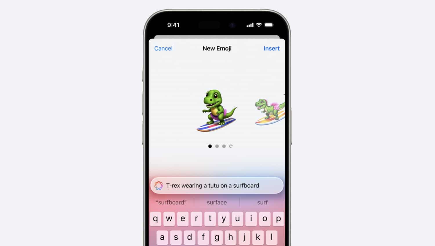 Mit der Emoji-Tastatur lassen sich jetzt individuelle Genmoji erstellen. Einfach eine Beschreibung eintippen und schon wird ein passendes Emoji generiert. Alternativ kann auch ein Foto als Vorlage dienen. Wer möchte, kann das Genmoji mit Accessoires wie Hüten oder Sonnenbrillen anpassen und es anschließend als Sticker oder Tapback-Reaktion versenden.
