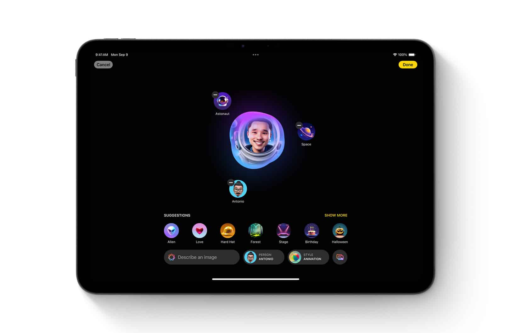 • Synchronisiere Bilder geräteübergreifend in deiner Image Playground-Mediathek mit iCloud.