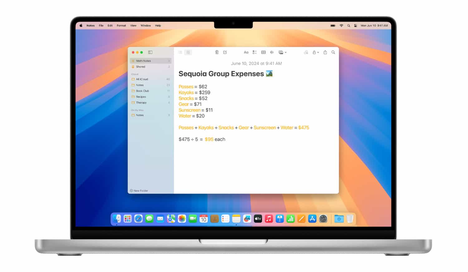 - Mit der Funktion „Mathematik in ‚Notizen‘“ kannst du Ausdrücke in deiner Notiz eingeben, um sie direkt zu lösen.
