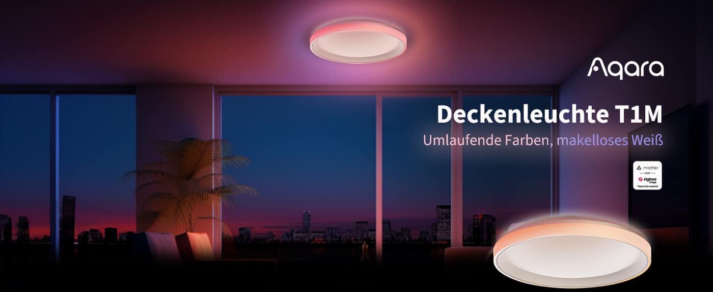 Erst gestern ist die Kickstarterkampagne für das neue Aqara U200 Smart Lock mit Apple Home Key gestartet, ab heute könnt ihr auch die neue Deckenlampe Aqara T1M (Amazon-Link) kaufen. Die Lampe funkt per Zigbee und funktioniert in Kombination mit einem Aqara 3.0 Hub auch mit HomeKit und Siri, Amazon Alexa oder auch Google Assistant. Der Hub stellt auch den Support für Matter bereit. Pünktlich zum Markstart bezahlt ihr mit dem Gutschein LIGHTT1MEU nur 134,99 Euro statt 149,99 Euro.
