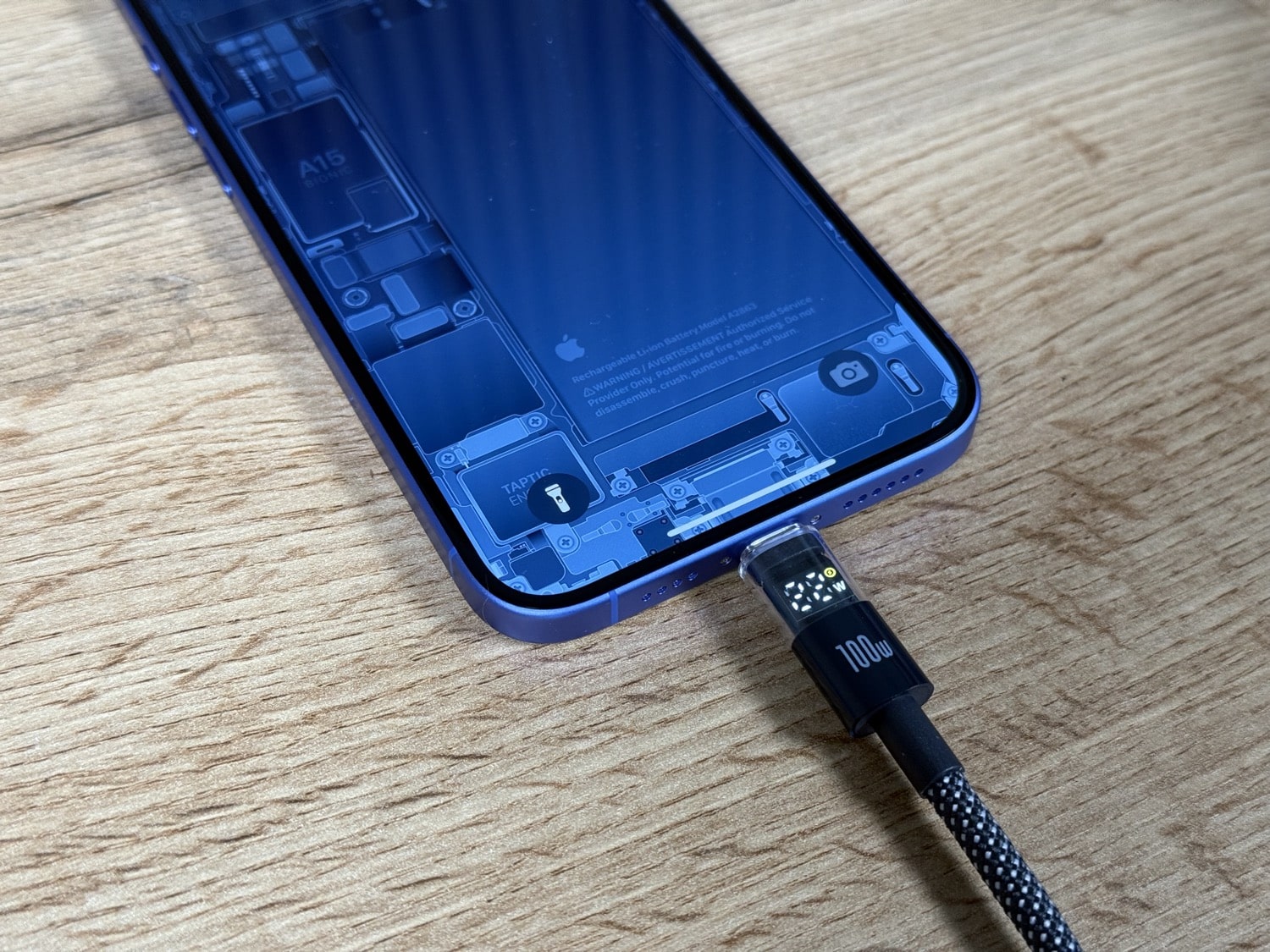 Insgesamt macht das USB-C-Kabel von Baseus einen guten Eindruck, was die Verarbeitung anbelangt. Die Stecker sind außen aus Plastik gefertigt und gegen Abknicken gesichert. Die Stecker sind zwar recht dick, das „iPhone-seitige“ Ende ist aber so gestaltet, dass es kein Problem mit Hüllen geben sollte. Ich habe das Kabel mit zwei Schutzhüllen ausprobiert und es gab keine Schwierigkeiten.