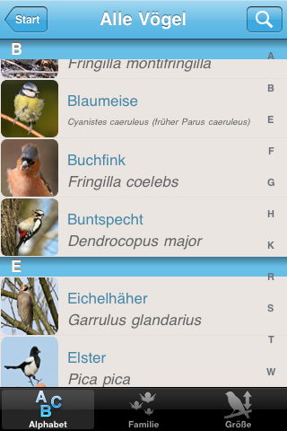 Direkt nach dem Start wird man von einer langen Liste an komisch klingenden Zusatzstoffen begrüßt. Die lange Liste ist entweder mit dem Finger oder der Seitenleiste am rechten Rand scrollbar und entweder alphabetisch nach Zusatzstoffen oder den E-Nummern sortierbar.