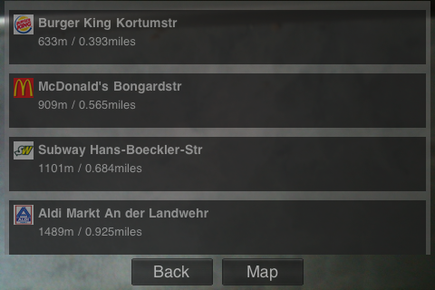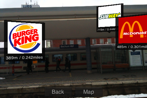 Da die Augemted Reality Option einen Kompass voraussetzt, bleibt diese Option den Besitzern eines iPhone 3GS vorenthalten. Auf älteren iPhones oder dem iPod Touch werden lediglich auf die Dienste von Google Maps zurückgegriffen.