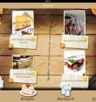 Saisonale Updates sorgen für Abwechslung im Backofen. Die Auswahl reicht von original Sachertorte über kalter Hund, bis hin zu Schlaraffenlandwaffeln die mittels eines appetitanregenden Vorschaubildes ergänzt werden. Das Layout sieht sehr nach liebevollen, hausgemachten Kuchen á la Mama aus. Kleine kitschige Blümchen, Holzplankenhintergrund, schöne Schreibschrift, lassen alles sehr nach romantischer Landküche wirken und machen Hunger auf mehr.