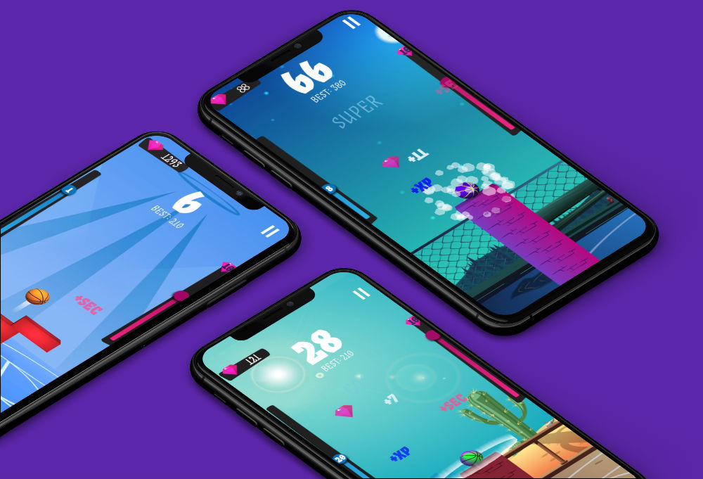 Das einzige Ziel in Bastack Ball ist es, einen Basketball durch Antippen springen zu lassen, so dass er auf einer von der Seite ins Bild bewegte Plattform platziert wird – und das nach Möglichkeit präzise in der Mitte, um die meisten Punkte zu bekommen. Auch kontinuierliche Combos von perfekten Platzierungen werden in Bastack Ball belohnt.