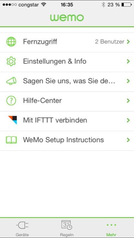 - kostenlose WeMo-App (App Store-Link)
