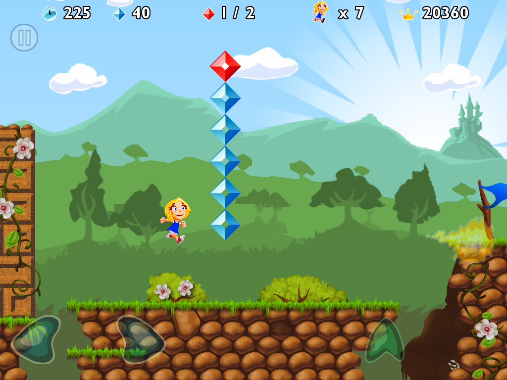 Lange dauert es nicht, bis man sich nach dem ersten Start der App zum ersten Mal auf den Weg durch die 2D-Welt macht. Wie man es aus alten Klassikern wir Super Mario auf dem Gameboy oder dem Super Nintendo kennt, geht es dabei vorzugsweise von links nach rechts. Aber wenn wir ehrlich sind, ist Giana Sisters HD ebenfalls ein Klassiker.