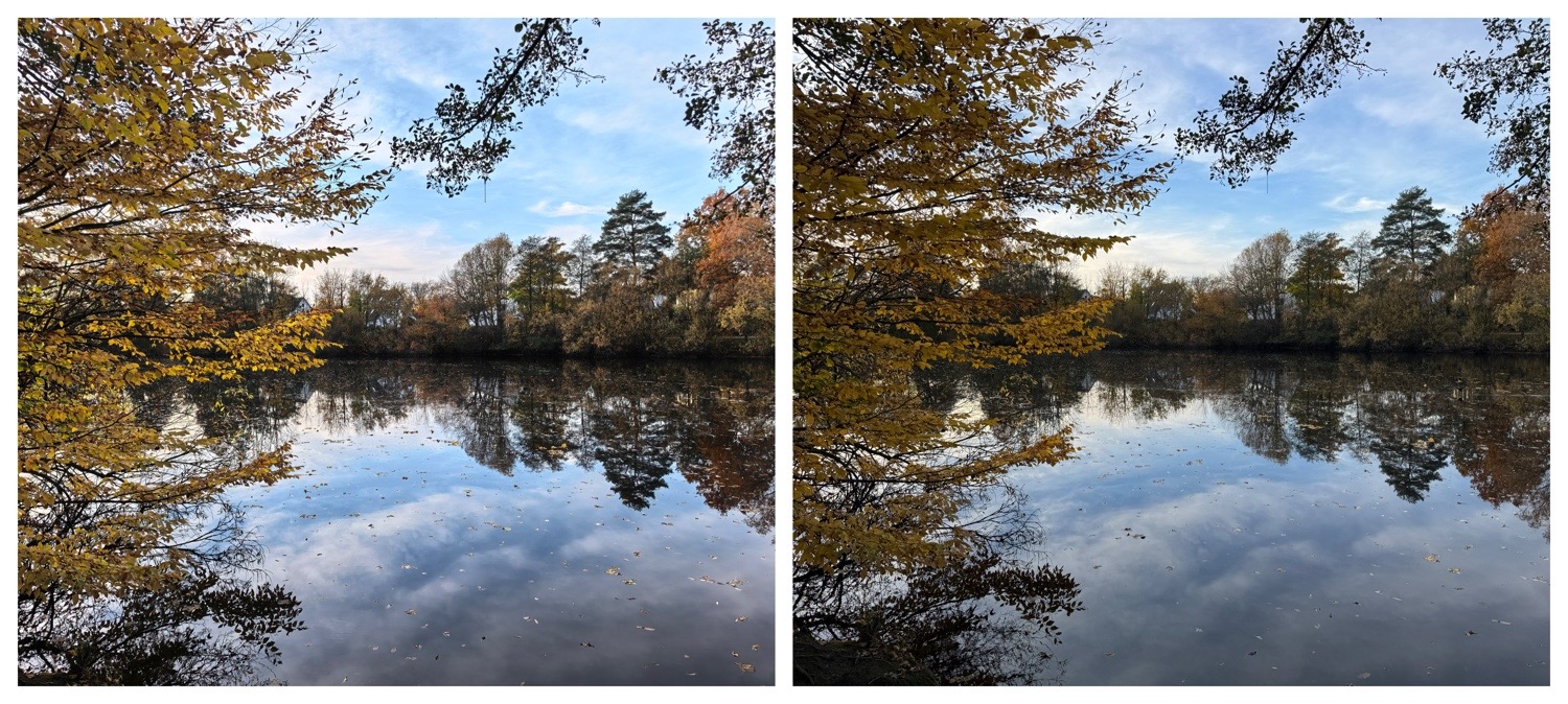 Ich habe in den letzten Tagen das Huawei Pura 80 Pro bei Spaziergängen in der Natur zusätzlich zu meinem iPhone 15 Pro mitgeführt und mit beiden Geräten Aufnahmen der gleichen Motive, bei Deaktivierung jeglicher KI-Verbesserungen, gemacht. Was generell auffällt, sind die lebendigen Farben, die präzise Schärfe und gute Ausleuchtung der Aufnahmen, auch im direkten Vergleich mit den Shots meines iPhone 15 Pro. Natürlich ist dieser Vergleich nicht komplett aufschlussreich, dazu hätte ich ein aktuelles iPhone 17 Pro oder iPhone 17 Pro Max als Vergleichsmodell nutzen müssen. Nichtsdestotrotz kann man auf diese Weise Schlüsse ziehen, wie unterschiedlich die Geräte arbeiten und was sich in den letzten paar Jahren im Hinblick auf mobile Fotografie alles auf dem Markt getan hat.
