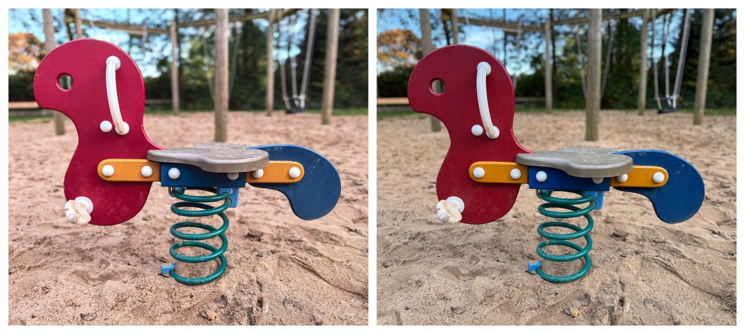 „Lebendige Farben: Links 1x Porträtmodus des Huawei Pura 80 Pro, rechts der gleiche Modus beim iPhone 15 Pro.“