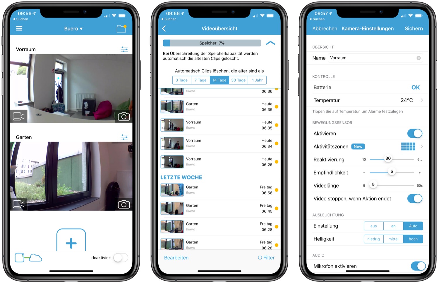 Jede Einstellung, die vom Standard abweicht, beeinflusst die Batterielaufzeit. Videos können zum Beispiel maximal 60 Sekunden lang sein, wer einen Einbruch aufzeichnen will, bekommt so nur einen minimalen Ausschnitt – und reduziert gleichzeitig die Laufzeit.