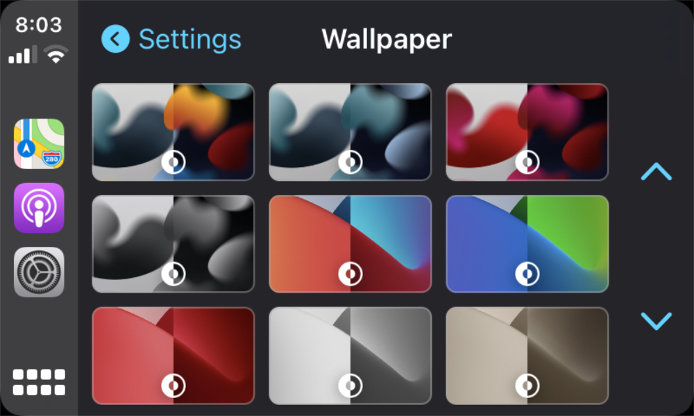 Apple wird mit iOS 15 auch gleich vier neue Hintergrundbilder für CarPlay bereitstellen. Diese sehen ähnlich zu der mit iOS 15 für das iPhone und iPad veröffentlichten Wallpaper-Auswahl aus. Auch für CarPlay wird es eine helle und dunkle Variante geben, zwischen der sich je nach Tageszeit automatisch wechseln lässt. Auch eine manuelle Auswahl eines hellen oder dunklen Hintergrundbildes ist natürlich möglich.