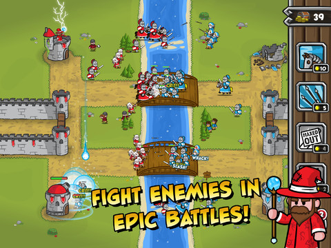 Castle Raid mischt Echtzeitstrategie mit einem Casual-Game. Anstatt auf zahlreiche verschiedne Einheiten zu setzen, beschränkt sich der Titel auf vier Einheiten. Zusätzlich gibt es einen Raketenangriff und einen Magier, mit dem man seine Burg vor den Feinden beschützen kann. Burg, Feinde – worum geht es überhaupt?