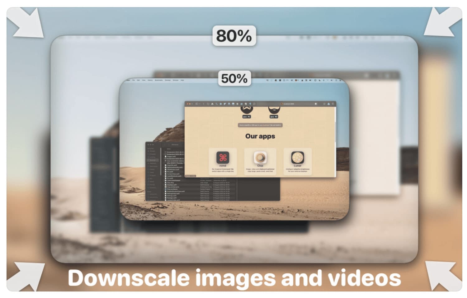 Clop nistet sich in der Mac-Menüzeile ein, kann aber auch im Hintergrund auf eine Aktion warten. Wird zum Beispiel ein Screenshot angefertigt oder Foto kopiert, kann Clop am Bildschirmrand ein kleines Fenster öffnen und eine automatische Skalierung vornehmen. In den Einstellungen könnt ihr aber auch festlegen, dass sich Clop immer nur dann öffnet, wenn ihr eine Datei zum Beispiel an den rechten Displayrand zieht.