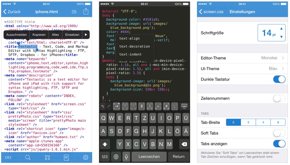 - Textastic für iPhone (App Store-Link, 3,99 Euro)