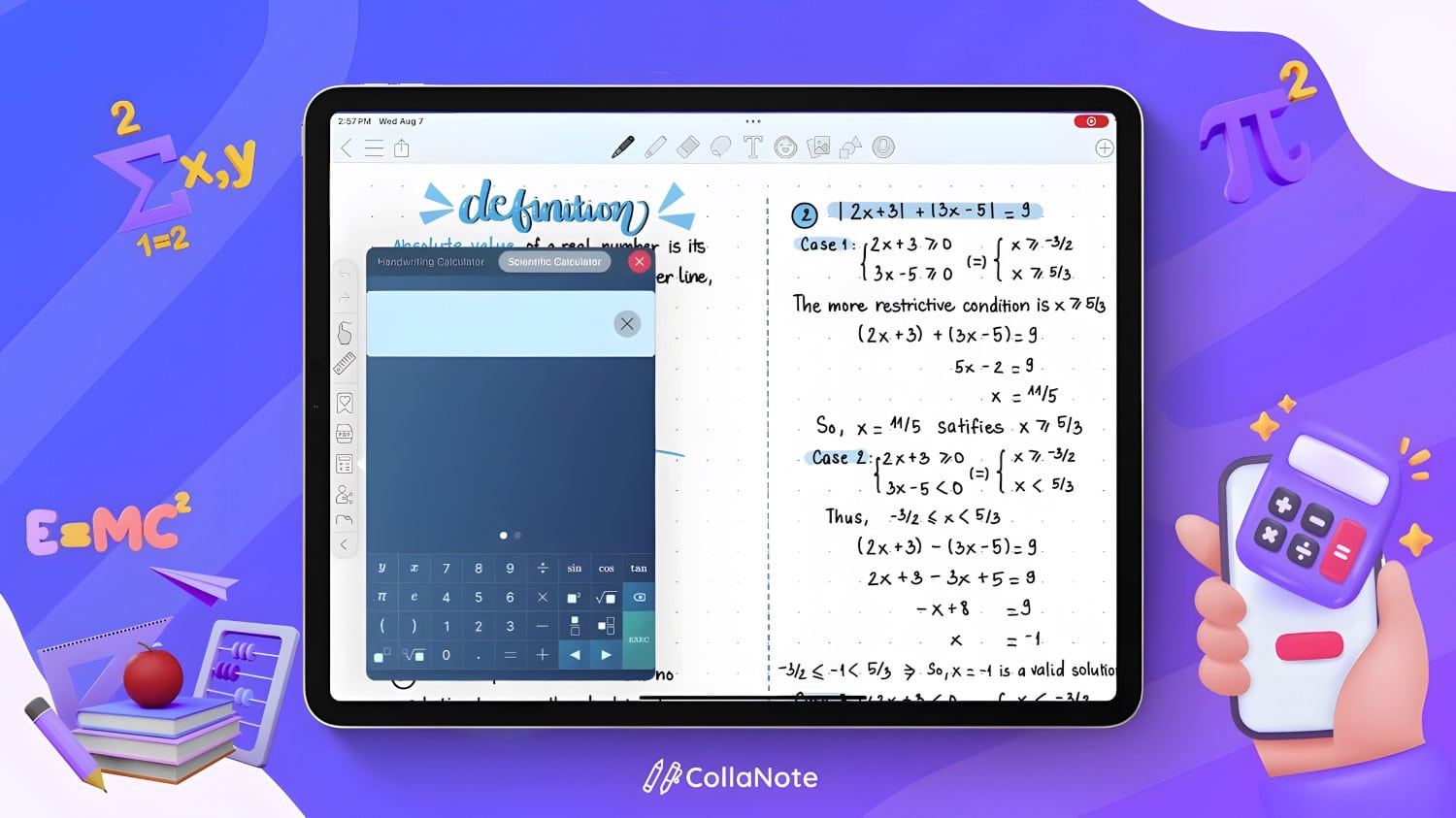 Wie viele andere Software-Lösungen integriert auch CollaNote in Version 3.0 Künstliche Intelligenz in die eigene App. Ein KI-gesteuerter Handschrift-Rechner, der mathematische Probleme direkt aus handschriftlichen Notizen löst, hält Einzug, ebenso wie KI-generierte Aufkleber, die sich über das Aufkleber-Menü selbst erstellen lassen, und ein KI-Assistent, mit dem sich chatten und Hilfe erhalten lässt.