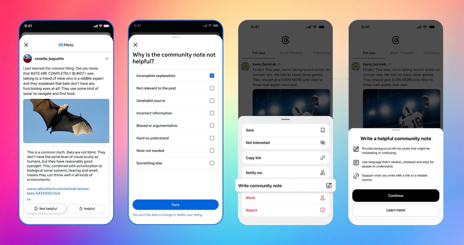In vielen sozialen Netzwerken sind Faktenchecks unabkömmlich, um Misinformation entgegenzuwirken. Unabhängige weltweite Redaktionen sorgten auch in der Vergangenheit bei Facebook, Instagram und Threads dafür, Falschinformationen zu kennzeichnen. Auch in den Meta-Netzwerken ist damit Schluss: Statt Profis sollen die eigenen Nutzer und Nutzerinnen Misinformation mit sogenannten Community Notes kennzeichnen.