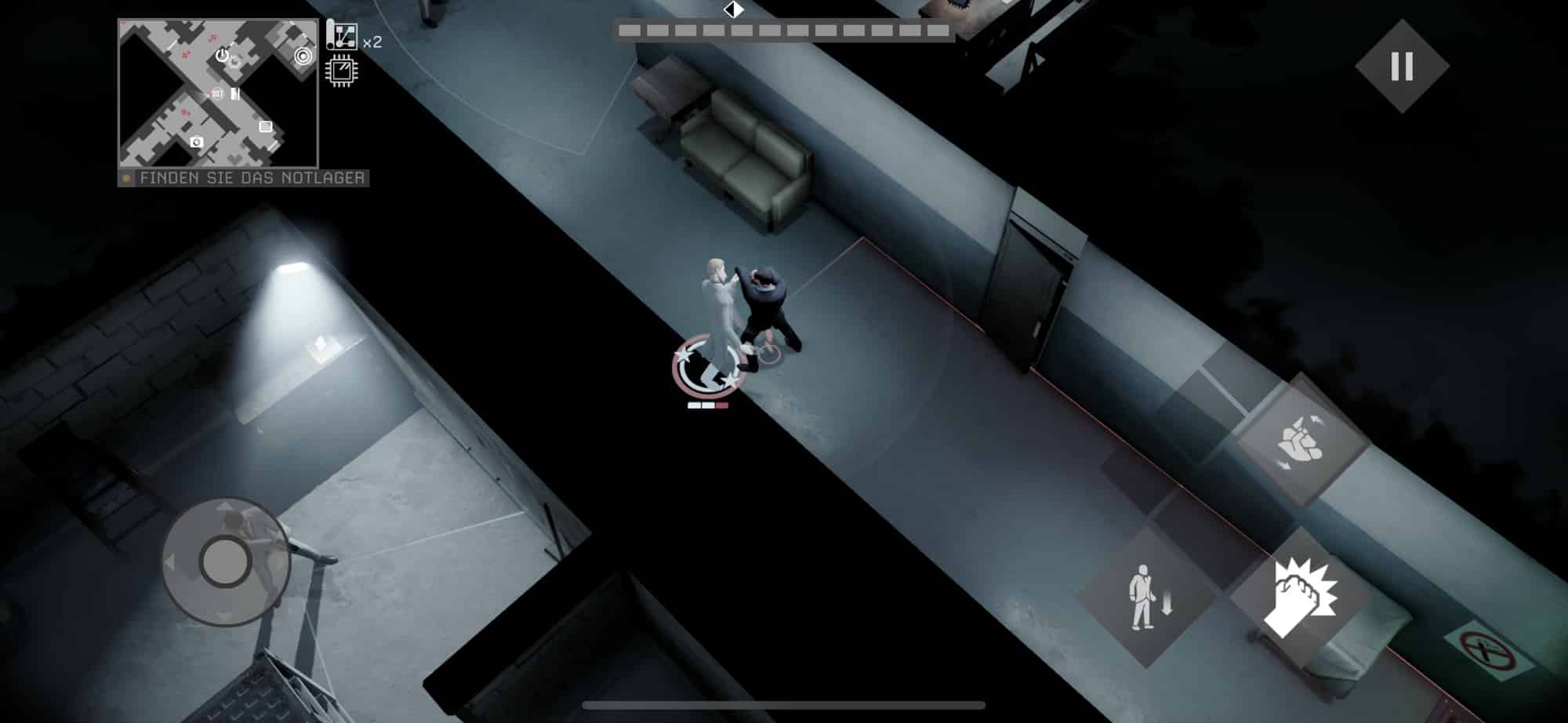 In der Top-Down-Ansicht müsst ihr als James Bond durch die vielen Räume navigieren, Objekte und Gegenstände ausfindig machen, Wachen ausschalten, ungesehen das Ziel erreichen und mehr. Die Atmosphäre und das Gameplay sind wirklich großartig, die Steuerung erfolgt über einfache Buttons auf dem Display. Immer wieder trefft ihr bekannte Charaktere aus dem Bond-Universum, zum Beispiel Q, M oder Moneypenny.