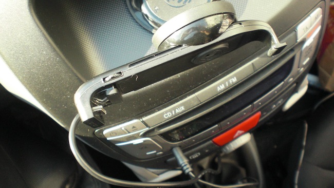Also schnell das AUX-Kabel an das Car Kit und das Autoradio angeschlossen. Gerade bei der TomTom-App traten hier allerdings sehr starke Störgeräusche auf, an Musik war so nicht zu denken. Besser funktioniert es, wenn man das Kabel in den Kopfhörerausgang steckt – hier mussten wir unser Autoradio aber voll aufdrehen.