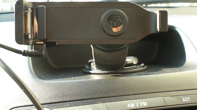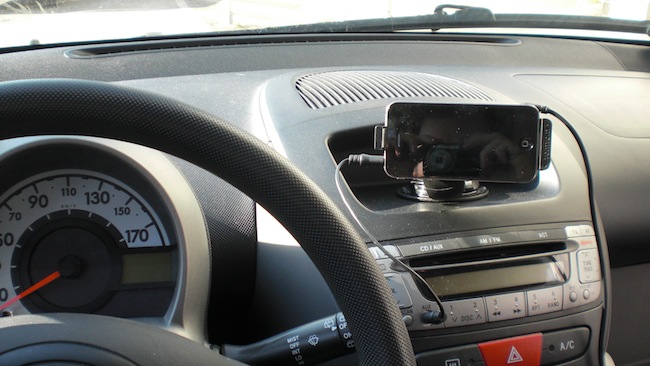 In unserem Citroen C1 haben wir das Car Kit auf dem Amaturenbrett befestigt, mit einem mitgelieferten Plastik-Aufkleber war das kein Problem – der Saugnapf-Halt ist wie an der Frontscheibe fest. Im Lieferumfang ist natürlich auch ein Adapter für den Zigarettenanzünder mitgeliefert, nur auf ein AUX-Kabel muss man verzichten, um das iPhone an das Autoradio anzuschließen.