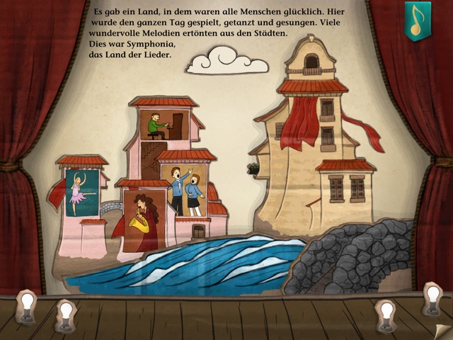 Der kleine Junge Henry möchte die verlorene Musik wieder zurückbringen, damit die Einwohner wieder glücklich sind. Auf dem Startbildschirm hat man die Auswahl, die Geschichte selbst zu lesen oder von einem Erzähler vorlesen zu lassen. Natürlich sind alle Inhalte in deutscher Sprache vorhanden.