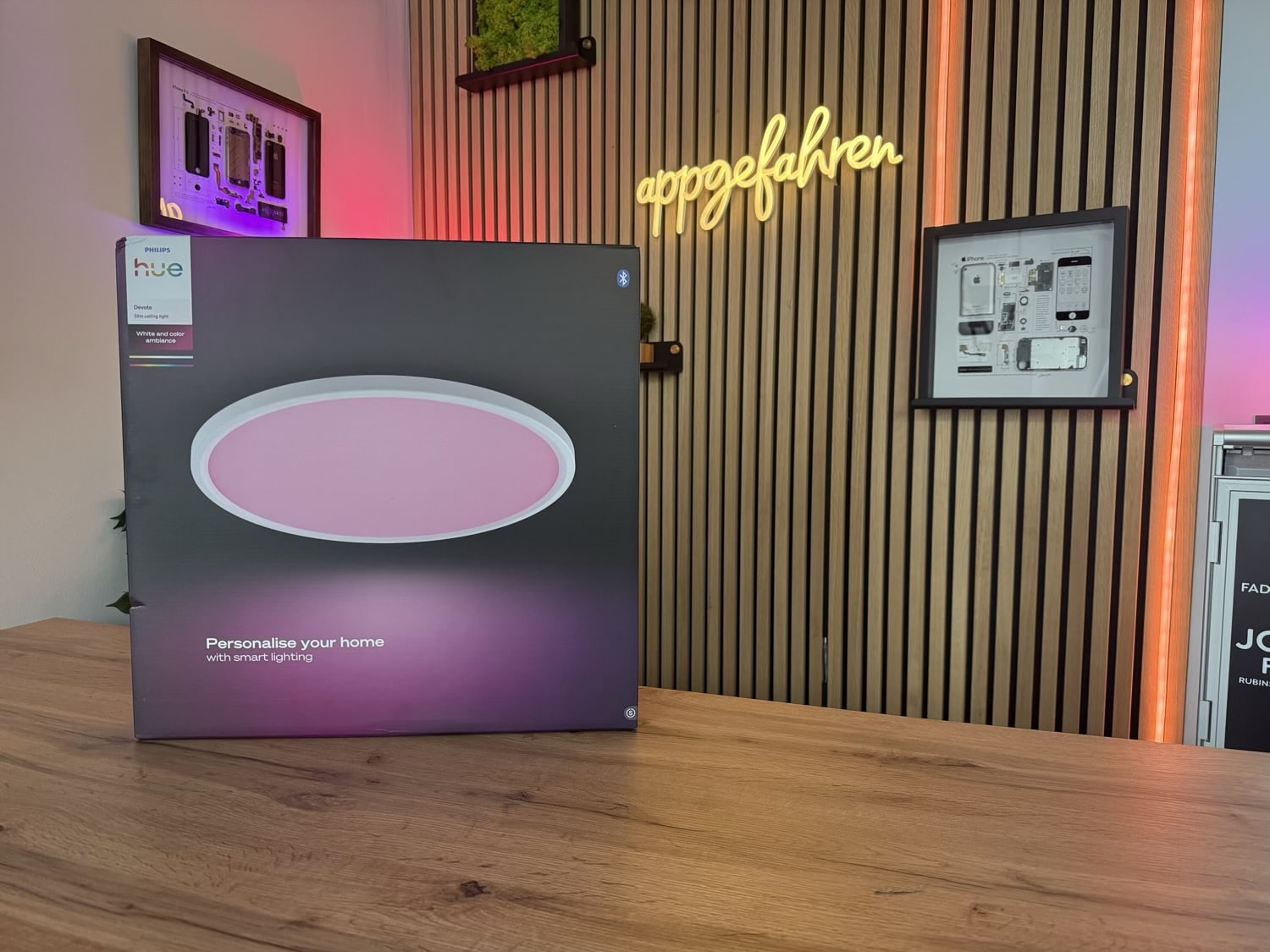 Die Steuerung erfolgt dabei über die Hue-App. Falls ihr neu dabei seid, ist eine direkte Verbindung per Bluetooth zur Deckenleuchte möglich. Für den vollen Funktionsumfang müsst ihr die Philips Hue Devote mit der Hue Bridge koppeln. Dann könnt ihr das Licht auch aus der Ferne steuern oder die Lampen mit externen Diensten wie Apple Home, Amazon Alexa oder Google Home verbinden. Die Hue Bridge verbindet die gekoppelten Leuchten auch mit Matter.