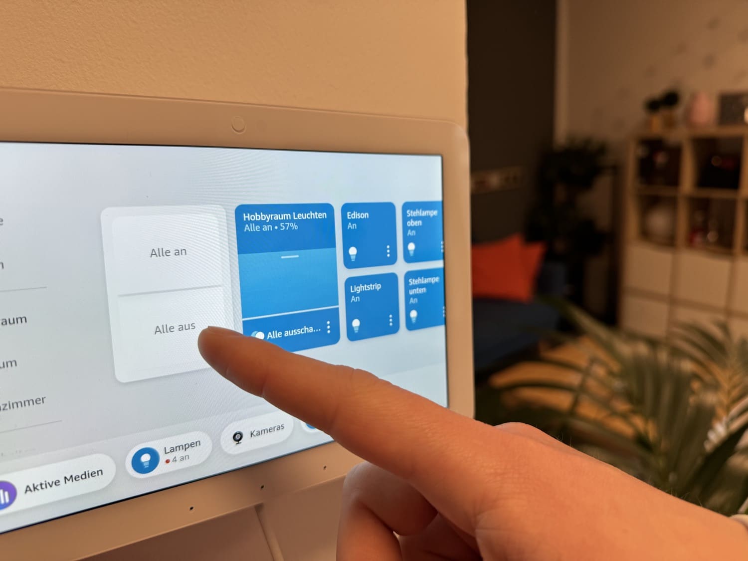 Der neue Echo Hub ist tatsächlich ein prima Smart-Home-Bedienpanel, allerdings gibt es auch einige Einschränkungen. Der Prozessor ist sicherlich nicht der schnellste seiner Art. Die Oberfläche läuft zwar recht flüssig, es gibt aber immer wieder Momente, wo kurz etwas nachgeladen wird. Oder es springen nicht alle Lampen gleichzeitig auf „an“, wenn man eine Gruppe einschaltet (auf der Anzeige des Displays). Wir reden hier am Ende aber auch von einem 200 Euro Gerät und keinem 600 teuren iPad.