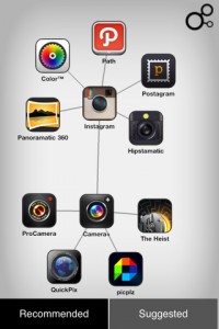 Neben uns gibt es also tatsächlich noch andere Wege, den App Store zu entdecken. In Discovr Apps (App Store-Link) wählt ihr einfach eine bestimmte App per Suchbegriff aus – und schon zeigt euch das Programm verwandte Applikation. Von diesen Vorschlägen aus kann man den Stammbaum durch einen Fingerklick immer weiter vergrößern, bis ein ganzes Geflecht aus Apps entsteht.