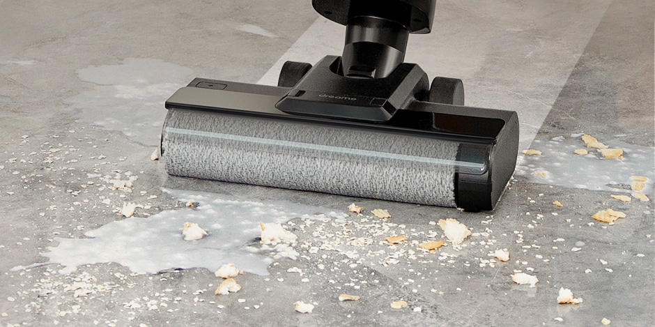 Der Dreame M12 wird mit einer motorisierten Bürste, einem Fugenaufsatz und einer Ladestation geliefert. Die Bürste selbst ist zu einer Seite geöffnet und kann so eine einseitige Kantenreinigung durchführen. Der Motor sorgt für eine sehr einfache Handhabung, da der Sauger ohne viel Kraft über den Boden bewegt werden kann und die Rollen in die entsprechende Richtung automatisch gedreht werden. Ebenfalls praktisch: Hier gibt es einen Schneidekamm, der Verschmutzungen lösen und entfernen kann. So wird vermieden, dass Haare aufgewickelt werden.