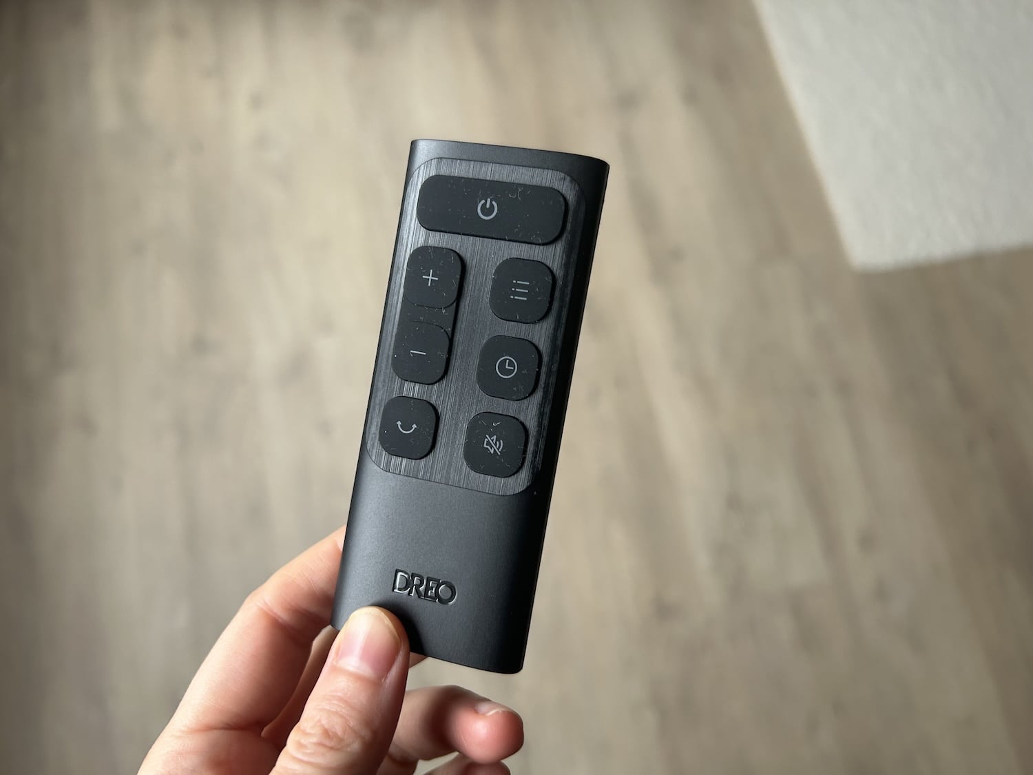 Die Inbetriebnahme des Solaris 718 ist aber denkbar einfach: An gewünschter Stelle aufstellen, Stecker einstecken und den On-Button auf dem Touch-Screen an der Oberseite drücken. Alternativ lässt sich zur Steuerung auch die mitgelieferte Fernbedienung verwenden, die über sieben Tasten verfügt und recht selbsterklärend ist. Eine Steuerung über Sprache oder App sowie die Integration ins Smart Home sind nicht möglich.