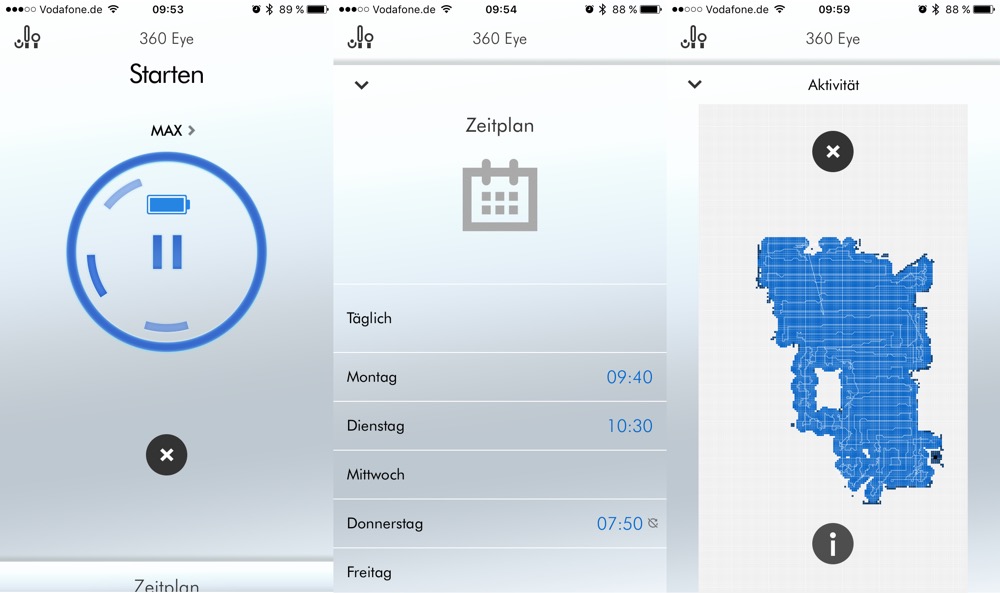 Im Gegensatz zur Konkurrenz, die oft mit einem Laser zur Navigation arbeitet, kommt im Dyson 360 Eye eine 360-Grad-Kamera zum Einsatz. „Durch 30 Bilder pro Sekunde wird ein vollständiges und ständig aktualisiertes Bild der Umgebung erzeugt. Dieses einzigartige System macht systematische Bewegungen und Reinigungen möglich“, heißt es in der Produktbeschreibung. Mit einer speziellen Software wird sogar eine Karte der Reinigung erstellt, auf der man nach der später genau sehen kann, wie sich der Roboter durch die Räume bewegt hat. Warum das in Zukunft noch besonders interessant werden kann, verrate ich euch später.