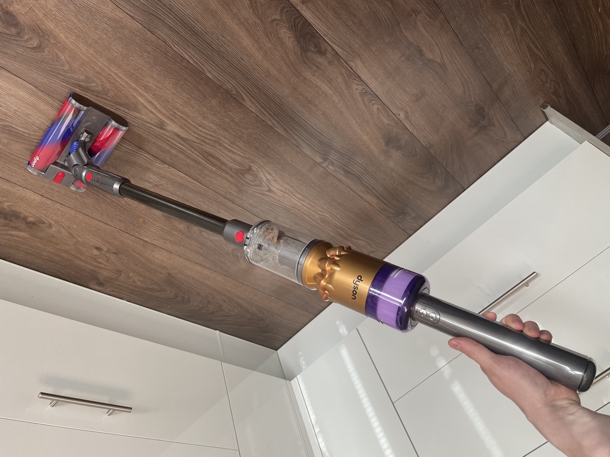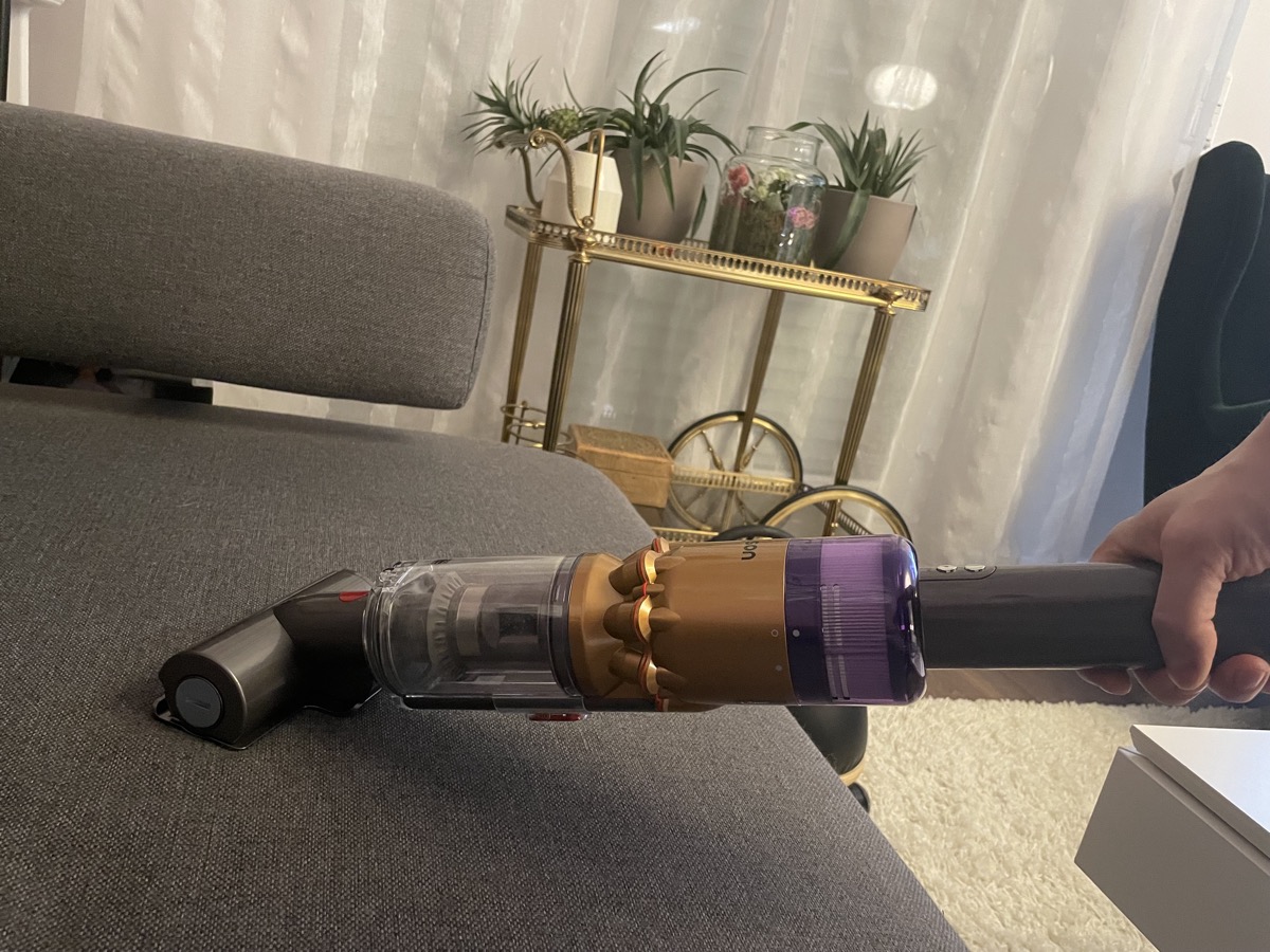 Neben der wirklich guten Wendigkeit gefällt mir auch die Tatsache, dass man mit dem Dyson Omni-glide auch flach unter dem Bett saugen kann. Über das Gelenk lässt sich der Sauger sehr flach bedienen und kann so auch unter Möbeln saugen, unter denen ein Saugroboter zum Beispiel keinen Platz findet.