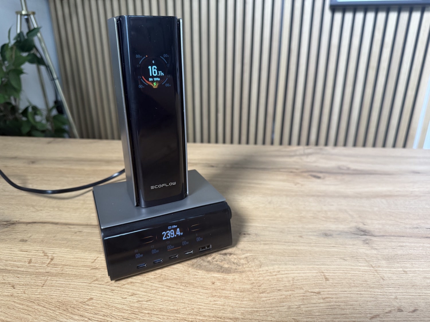 Wenn ihr euch nicht gleich das teure EcoFlow Rapid Pro Desktop-Ladegerät kaufen wollt, kann die Powerbank übrigens mit zwei USB-C-Kabeln mit bis zu 280 Watt geladen werden. Auch das ist ziemlich stark.