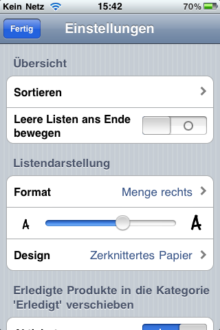 Wer seine Einkaufsliste weitere individualisieren möchte, kann in den Einstellungen nach seinen Vorlieben die besten Optionen wählen. Dort kann z.B. die Papierart, die Listendarstellung etc. wählen.