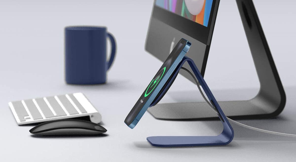 Wer statt Flüssigsilikon lieber auf Aluminium als Zubehör-Material setzt, findet bei Elago ebenfalls entsprechende Produkte für Schreibtisch und Co. Die Elago MS3 Ladestation ist in Schwarz, Indigoblau und Silber zu einem Preis von jeweils 24,99 Euro erhältlich und nimmt magnetisch ein iPhone 12 oder 13 per MagSafe-Ladepuck auf. Letzterer muss, wie bei allen Accessoires von Elago, selbst gestellt werden. Ein etwas anderes Design, bei dem das iPhone 12/13 in der Halterung „hängt“, bietet die Elago MS4 MagSafe Ladestation, die ab 26,99 Euro zu haben ist.