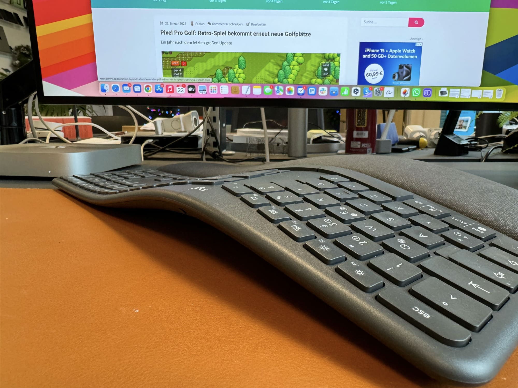 Die Eingewöhnung benötigt etwas Zeit, danach macht das Tippen auf der ergonomischen Tastatur aber viel Spaß. Sie ist etwas größer als herkömmliche Varianten, bietet dafür aber deutlich mehr Komfort für Hände und Handgelenke.