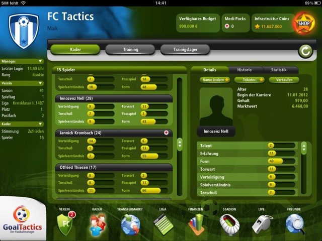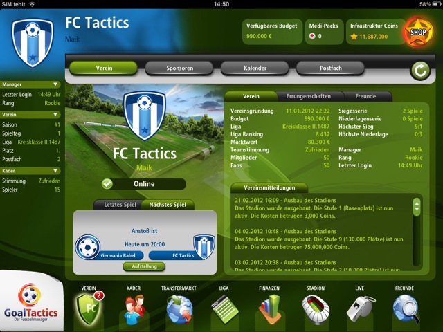 Bereits seit April 2011 arbeitet ein kleines Entwicklerteam an Goal Tactics , einem umfassenden Fußball-Manager. Wenn alles klappt, soll die App zum Start der Europameisterschaft im Juni für das iPad veröffentlicht werden, eine iPhone-Version soll später folgen. Durch direkten Kontakt zu den Entwicklern können wir euch bereits die ersten Informationen mit auf den Weg geben – und wollen euch gleichzeitig die Chance geben, eure Wünsche und Fragen zu äußern.