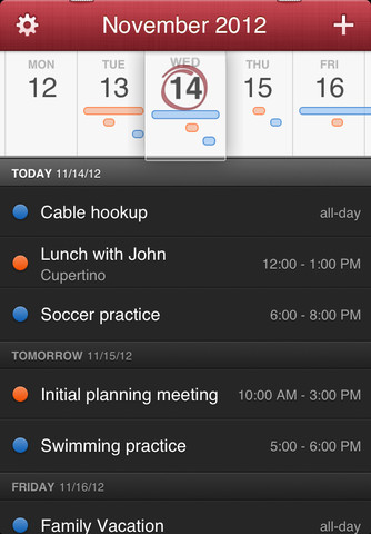 Dabei gefällt mir das Layout und die Aufbereitung der Inhalte sehr gut – das ist natürlich alles Geschmacksache. Neben der Standardübersicht gibt es noch den „DayTicker“, der alle täglich Ereignisse auflistet, so dass man wirklich nichts vergisst. Startet man die App übrigens zum ersten Mal, gibt es ein kurzes Tutorial. Die komplett deutschsprachige App bietet auch eine entsprechende Synchronisation und ist für CalDAV-Kalender vorbereitet, die iCloud oder der Google Kalender sind daher kein Problem für Fantastical. Freunde von Facebook werden sich aber über die optionale Funktion freuen, unter iOS 6 Veranstaltungen direkt aus dem sozialen Netzwerk in die App übertragen zu können.