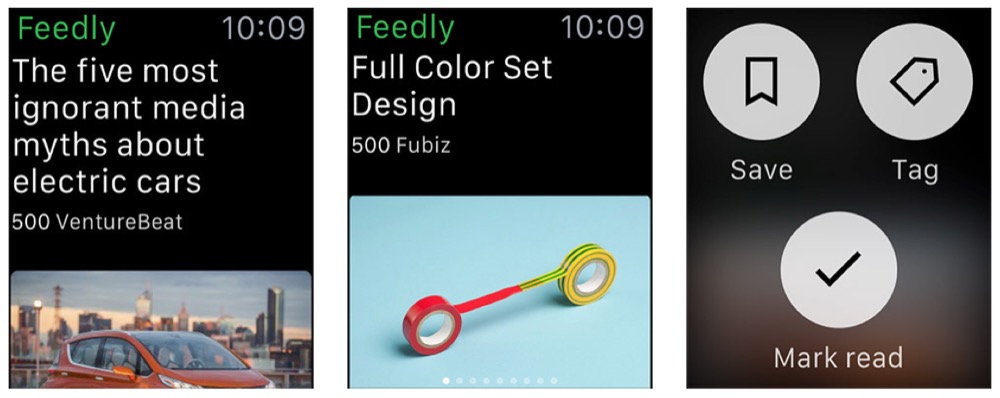 Wer per Feedly seine RSS-Feeds verwaltet, kann die Nachrichten jetzt auch auf der Apple Watch lesen. Weiterhin gilt: Liefert die Webseite nur einen gekürzten Feed aus, kann auch nur der erste Ausschnitt gelesen werden. Die ganzen Nachrichten müssten dann mobil oder auf dem Desktop gelesen werden. Per Watch lassen sich Nachrichten aber als „Gelsen markieren“ oder speichern.