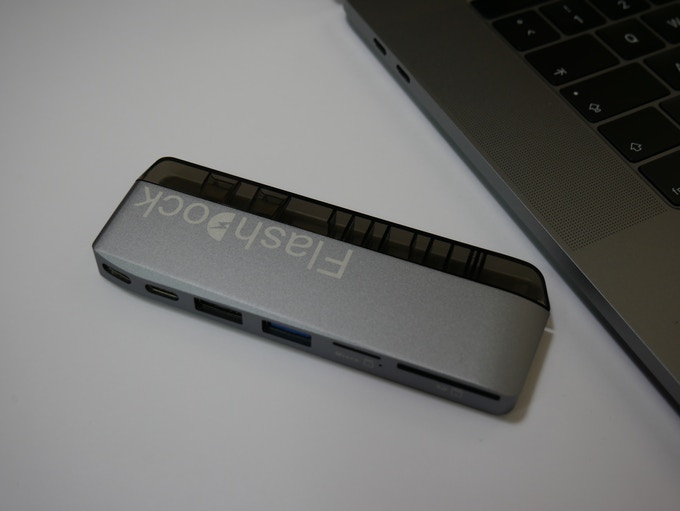 Das FlashDock befindet sich seit dem letzten Herbst in Entwicklung und kann bereits fertige Vorserienmodelle aufweisen. Neben einem SSD-Speicher mit 1 TB oder 2 TB Kapazität agiert das FlashDock zusätzlich als Hub, und kommt mit zwei Video-Output-Versionen: 5K Mini DisplayPort oder 4K HDMI. Zudem ist ein USB-C Input in jedem Modell enthalten, ebenso wie ein USB-, USB 3- und (Micro)SD-Slot zum Anschluss von weiteren Peripherie-Geräten.