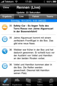 Mit der brandneuen App Race Ticket 2010, die ihr normalerweise für 3,99 Euro im App Store erwerben könnt, werdet ihr auch unterwegs über die wichtigsten Geschehnisse auf der Strecke informiert. Neben zahlreichen Basis-Informationen stehen euch während Qualifying und Rennen mehrsprachige Live-Ticker zur Verfügung.